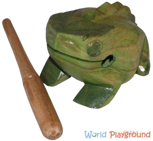 Avec le racloir Guiro grenouille vous serez étonnés de découvrir que ça sonne incroyablement comme une vraie grenouille! Il faut seulement racler le dos de la grenouille avec son bâtonnet en bois pour créer un bruit très réaliste. Un instrument de musique charmant que les enfants aimeront.