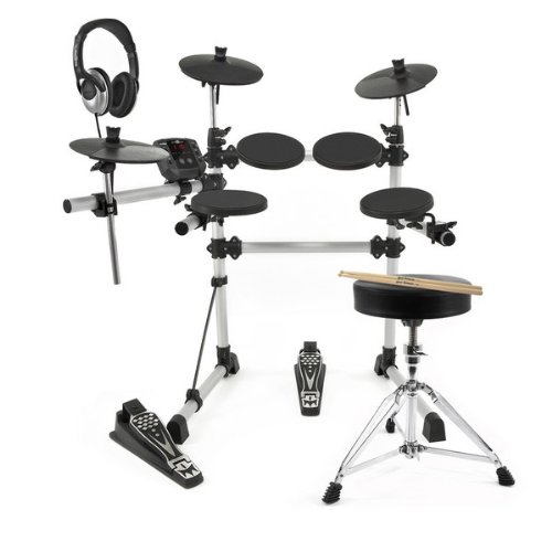 Compact et facile à utiliser cet impressionnant kit de batterie électronique est un kit de démarrage idéal pour les batteurs en herbe de tous âges. Le cadre polyvalent peut être facilement ajusté pour tenir compte de nimporte quel taille de joueur et le contrôleur se distingue par sa simplicité mais possède quand même toutes les fonctions que vous attendez dun kit de batterie électronique pour débutant le tout supporté par un châssis compact et léger idéal pour un usage domestique. A ce kit est ajouté un casque audio des baguettes et un tabouret haut de gamme.